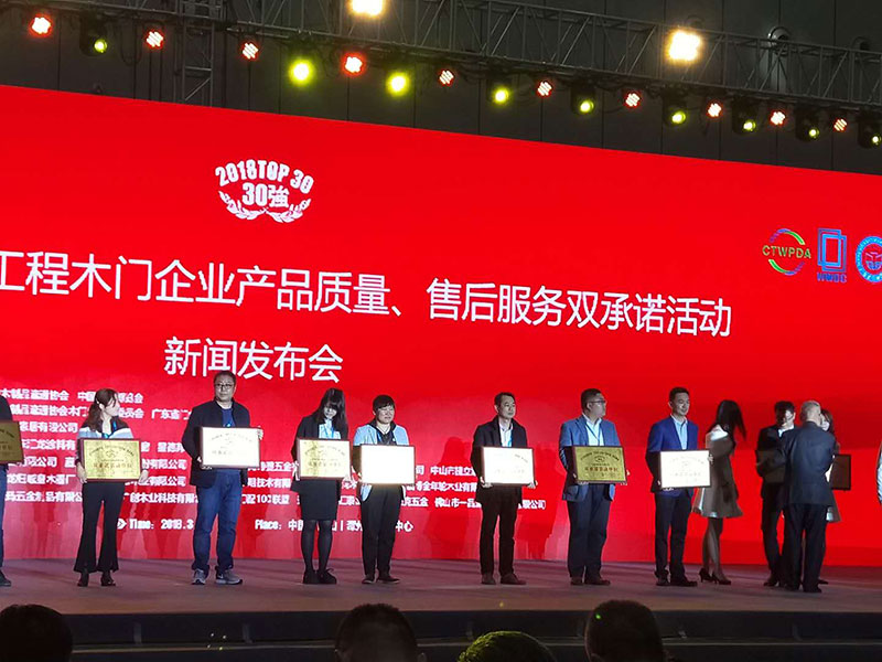 2018中國門窗品牌創(chuàng)新趨勢(shì)高峰論壇暨新聞發(fā)布會(huì)樹興木業(yè)有限公司榮獲2018全國市場(chǎng)工程木門企業(yè)產(chǎn)品質(zhì)量售后服務(wù)雙承諾活動(dòng)30強(qiáng)榮譽(yù)